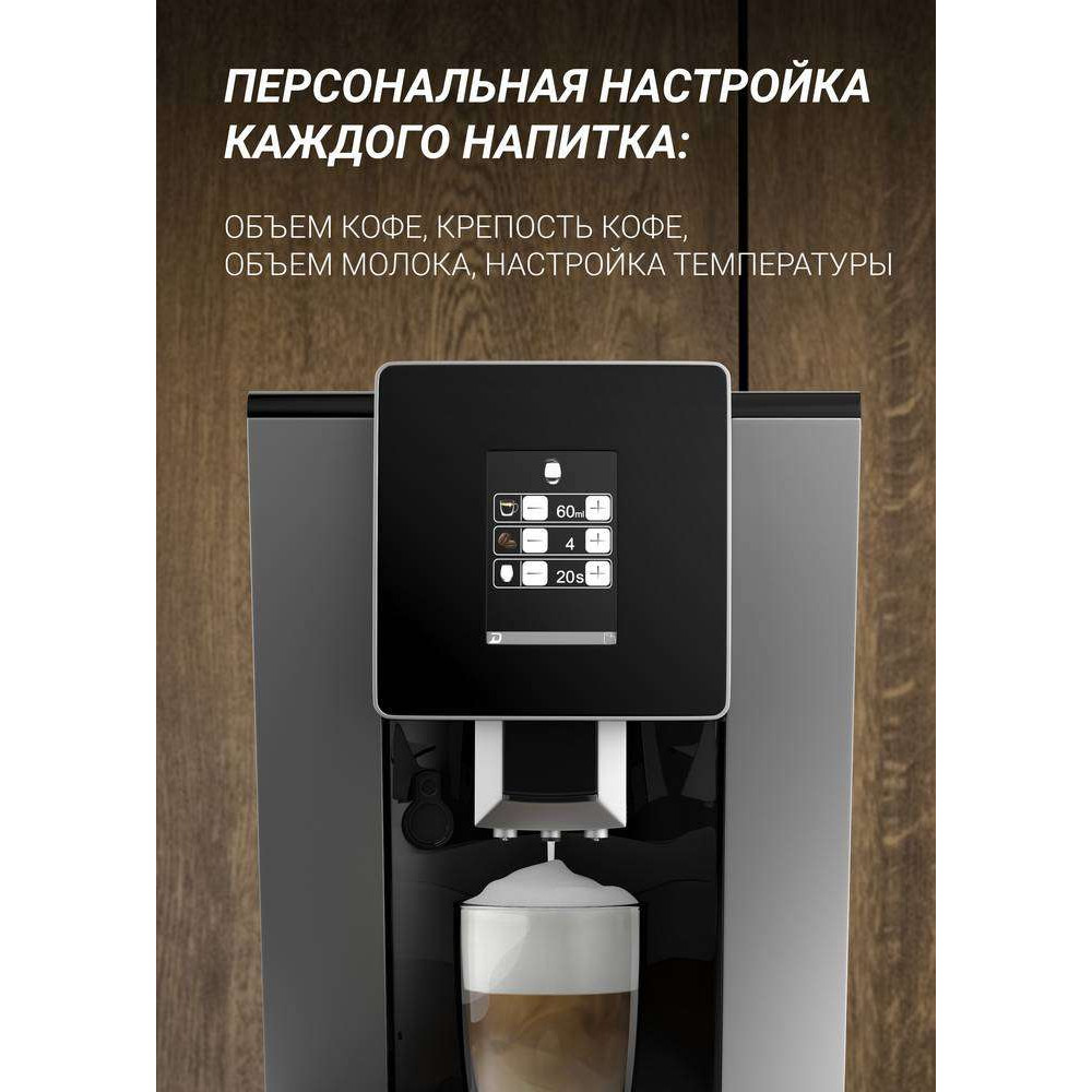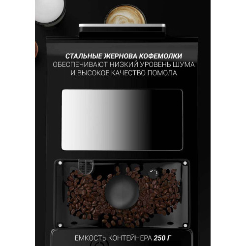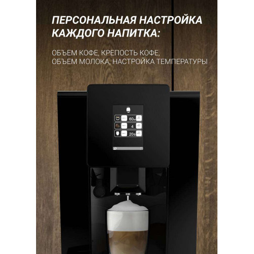 Кофемашина оснащена уникальной системой вспенивания молока Profi-cream, что позволяет готовить неповторимую молочную пену кремообразной консистенции. В данной модели предустановлено 6 автоматических программ: эспрессо, кофе, капучино, латте, горячее молоко и горячая вода. Каждую из этих программ пользователь может настроить индивидуально исходя из своих вкусовых предпочтений. Благодаря помпе итальянского производства с давлением 20 бар, кофемашина варит насыщенный эспрессо с превосходной кофейной пенкой. А цветной сенсорный дисплей с интуитивно понятным интерфейсом позволит приготовить любимый напиток всего одним касанием.