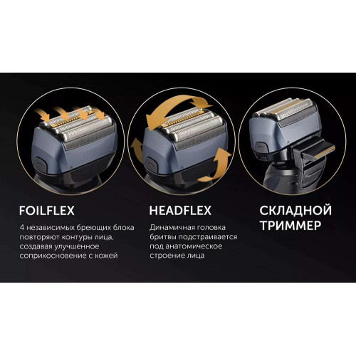 FoilFlex - 4 независимых бреющих блоков повторяют контуры лица, создавая улучшенное соприкосновение с кожей.