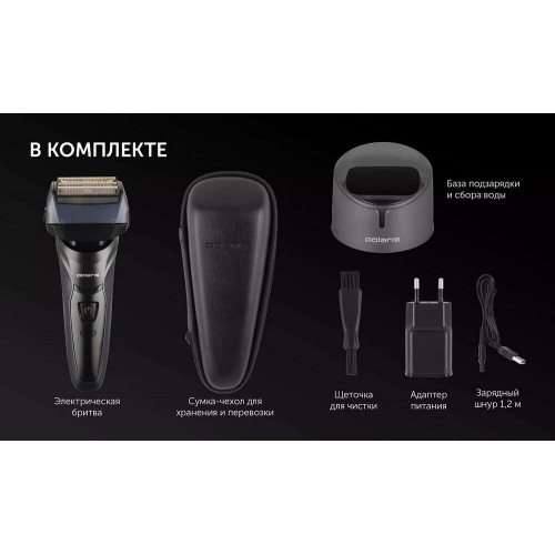 Комплектация: зарядная база, защитная крышка, твердый чехол для хранения и перевозки, щеточка для очистки, адаптер, шнур 1.2м