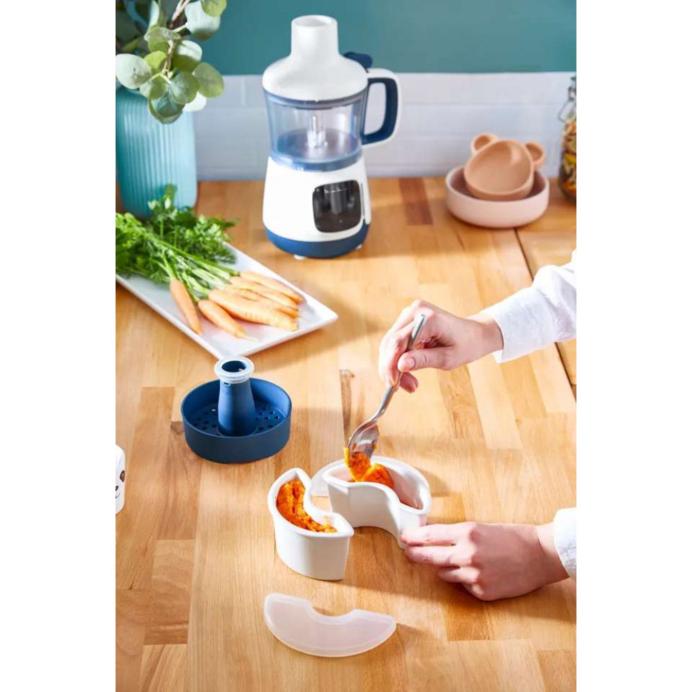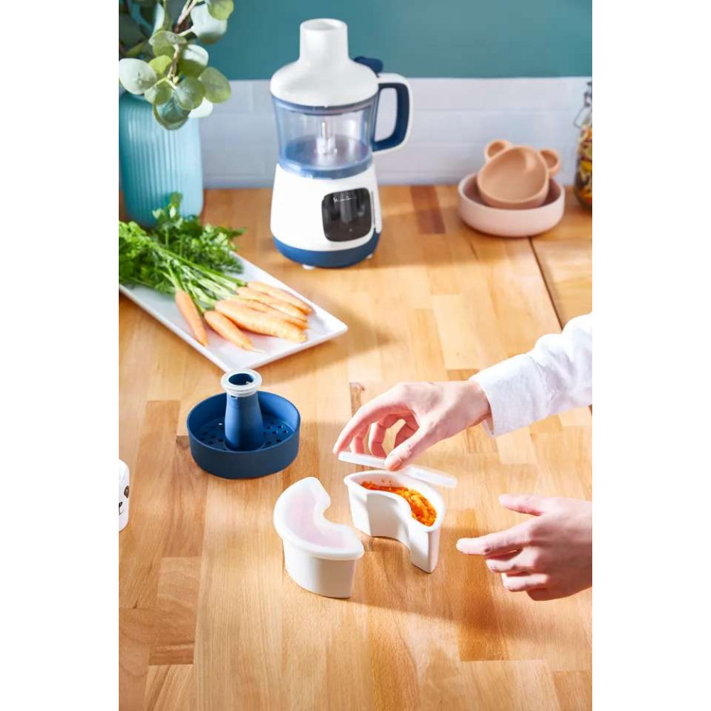Откройте для себя 4 режима работы: готовьте на пару, смешивайте ингредиенты, размораживайте и подогревайте блюда. Благодаря насадке с острыми металлическими ножами, вам доступны самые разные рецепты, от домашних пюре и супов до хумуса, гаспачо и шоколадного спреда. Детское питание удобно приготовить заранее и хранить в керамических банках, входящих в комплект, а при необходимости — быстро разморозить или разогреть.