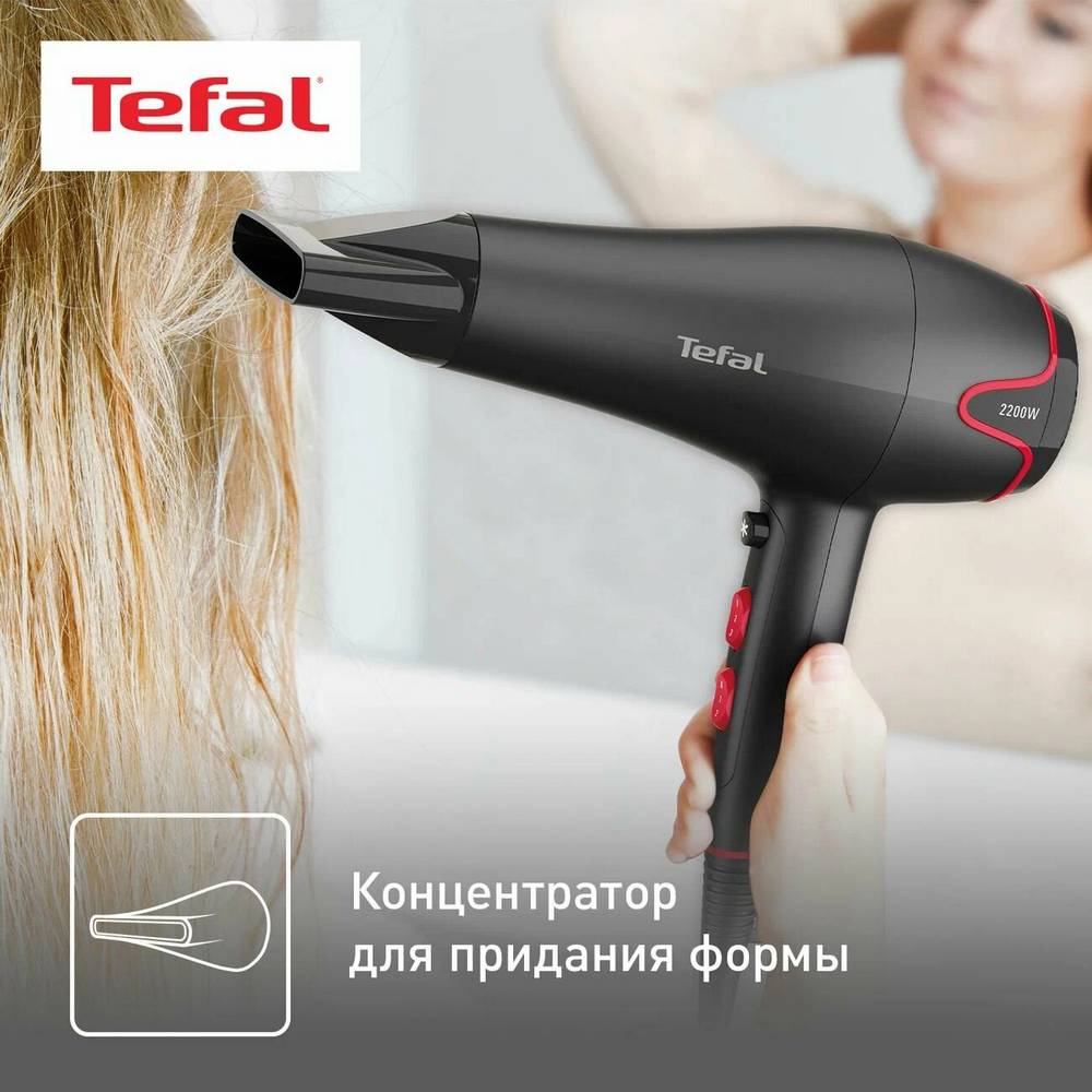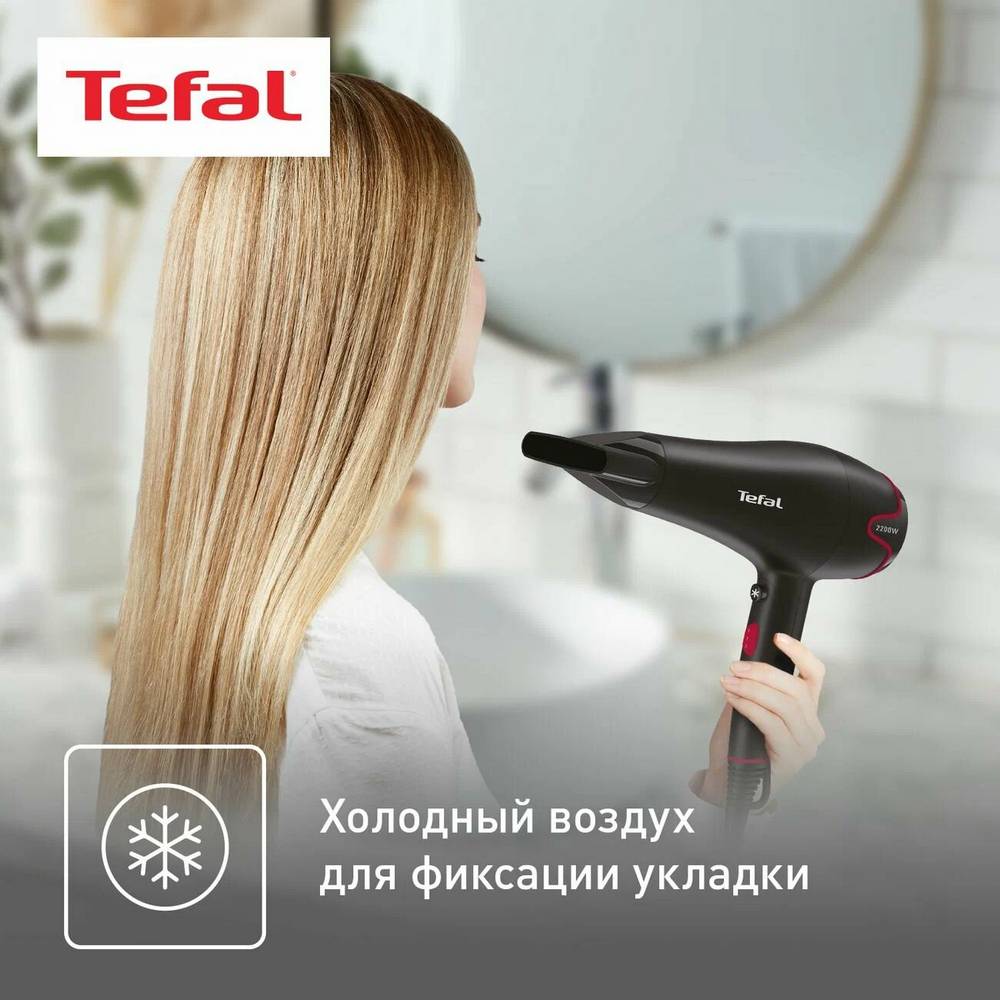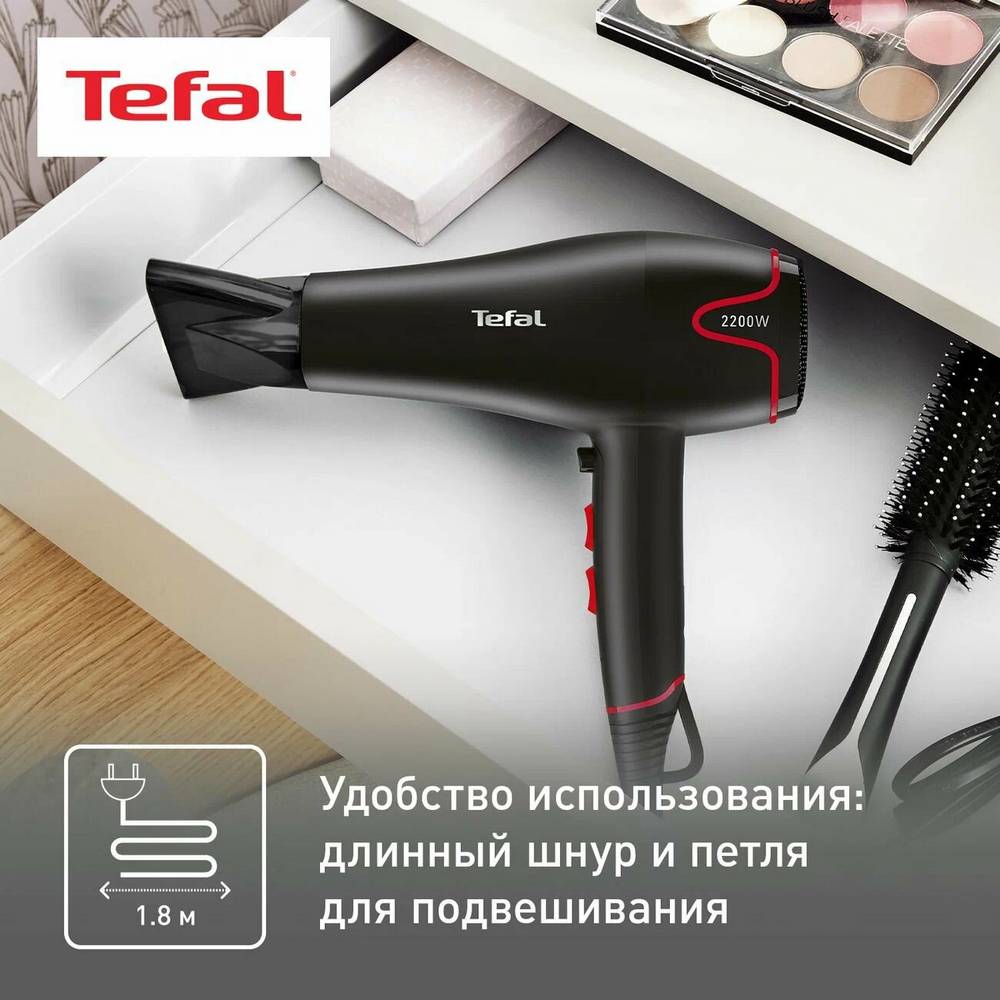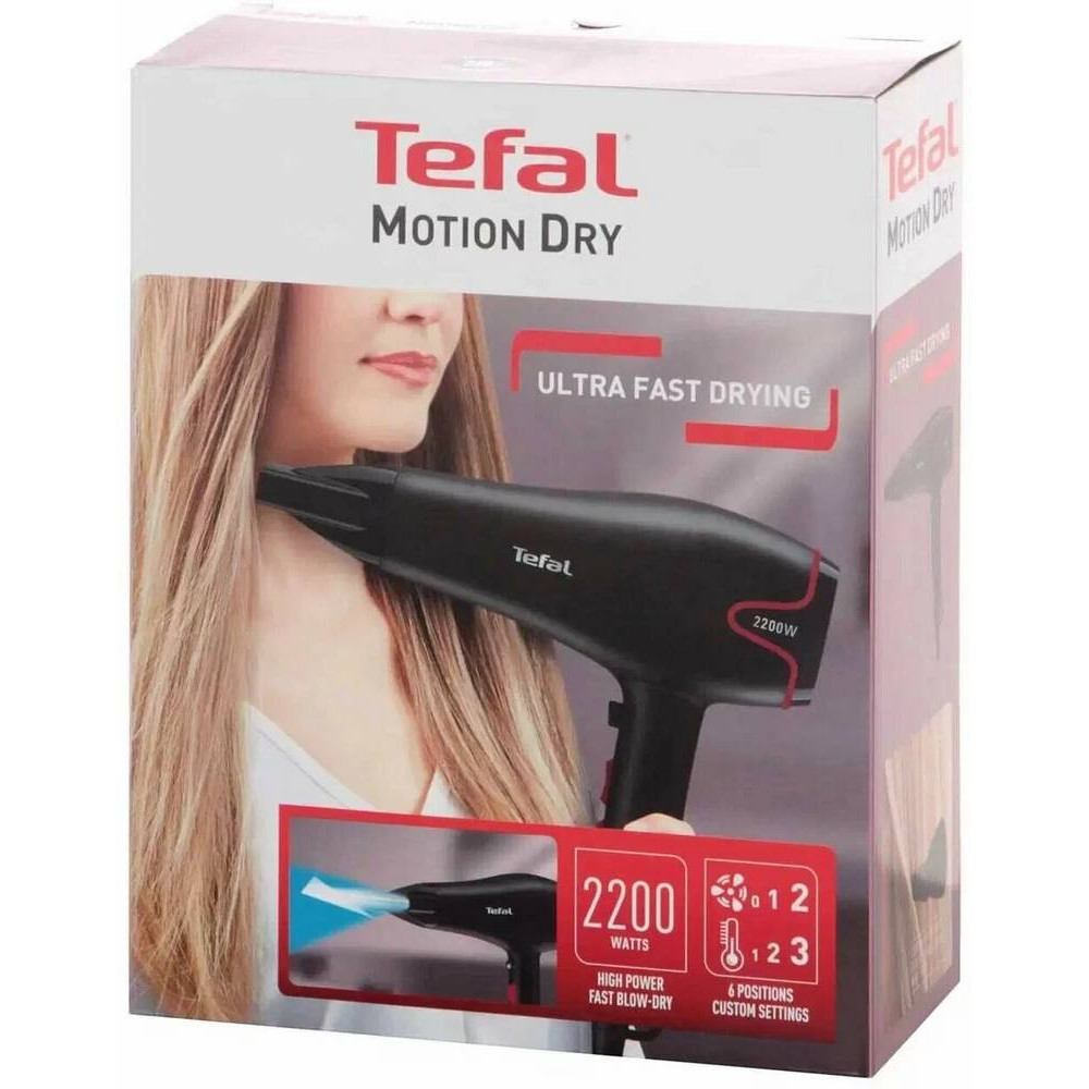 Фен Tefal Motion Dry делает ежедневный уход за волосами быстрым и комфортным. Мотор мощностью 2200 Вт создает сильный воздушный поток, а 6 настроек позволяют регулировать его скорость и температуру в зависимости от вашего типа волос, помогая быстро и эффективно высушивать влажные волосы.