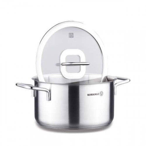 Кастрюля Korkmaz Stella из нержавеющей стали 18/10 Cr-Ni, 20x11 см, 3,4 литра.