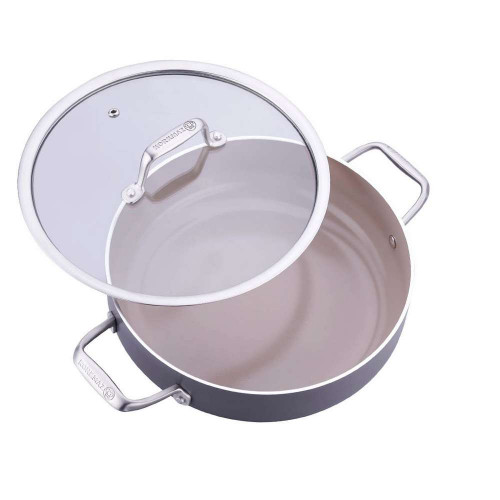Высокотехнологичное производство с огнестойким, антипригарным, термостойким внутренним и внешним покрытием. Керамическое покрытие сверхустойчиво к царапинам и долговечно. Специальная конструкция и утолщенное дно обеспечивают высокую теплопроводность даже при низких температурах. Обеспечивает превосходное приготовление пищи. Экологически чистая, высокотехнологичная технология производства. Легко моется.