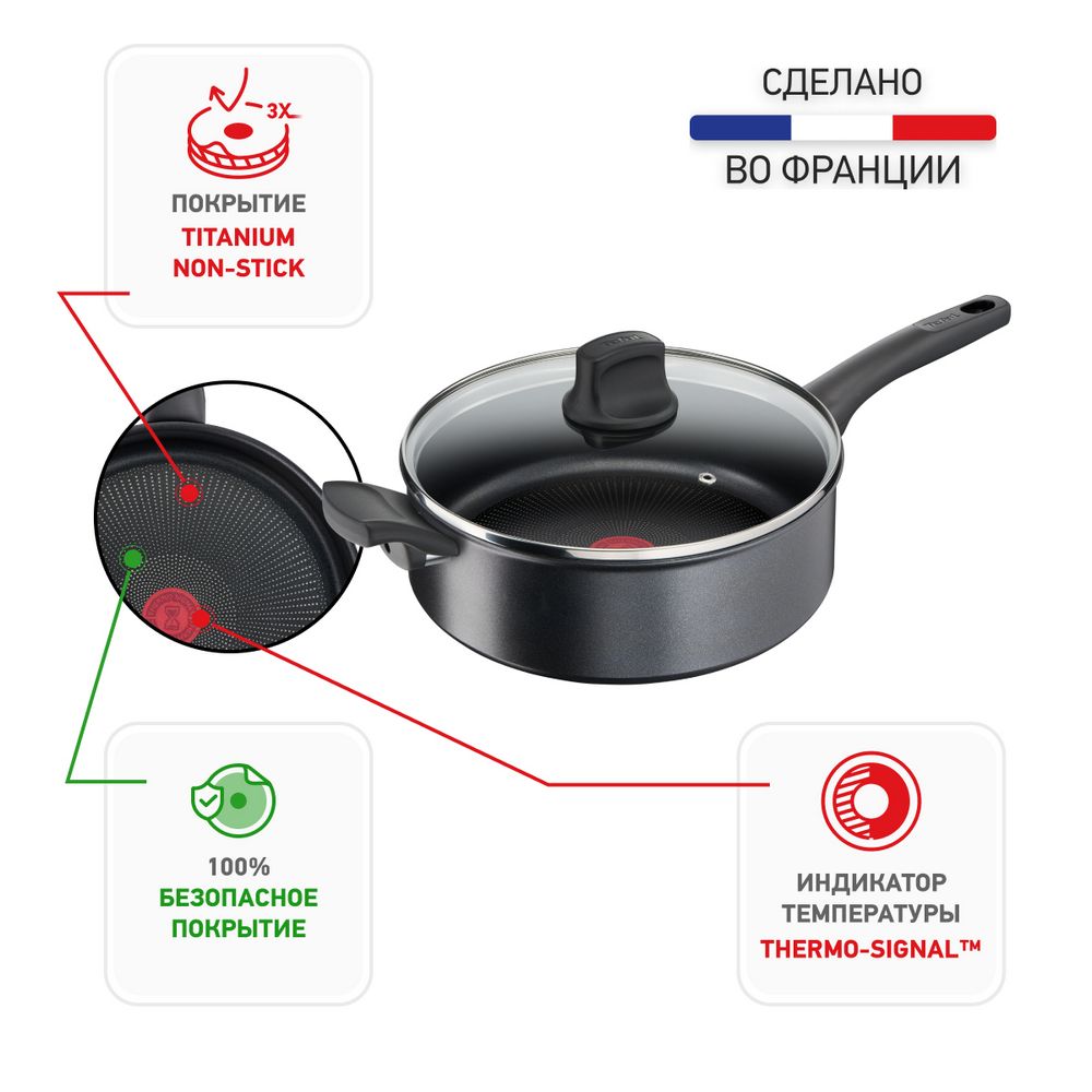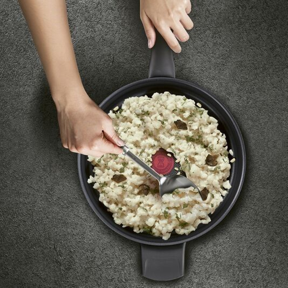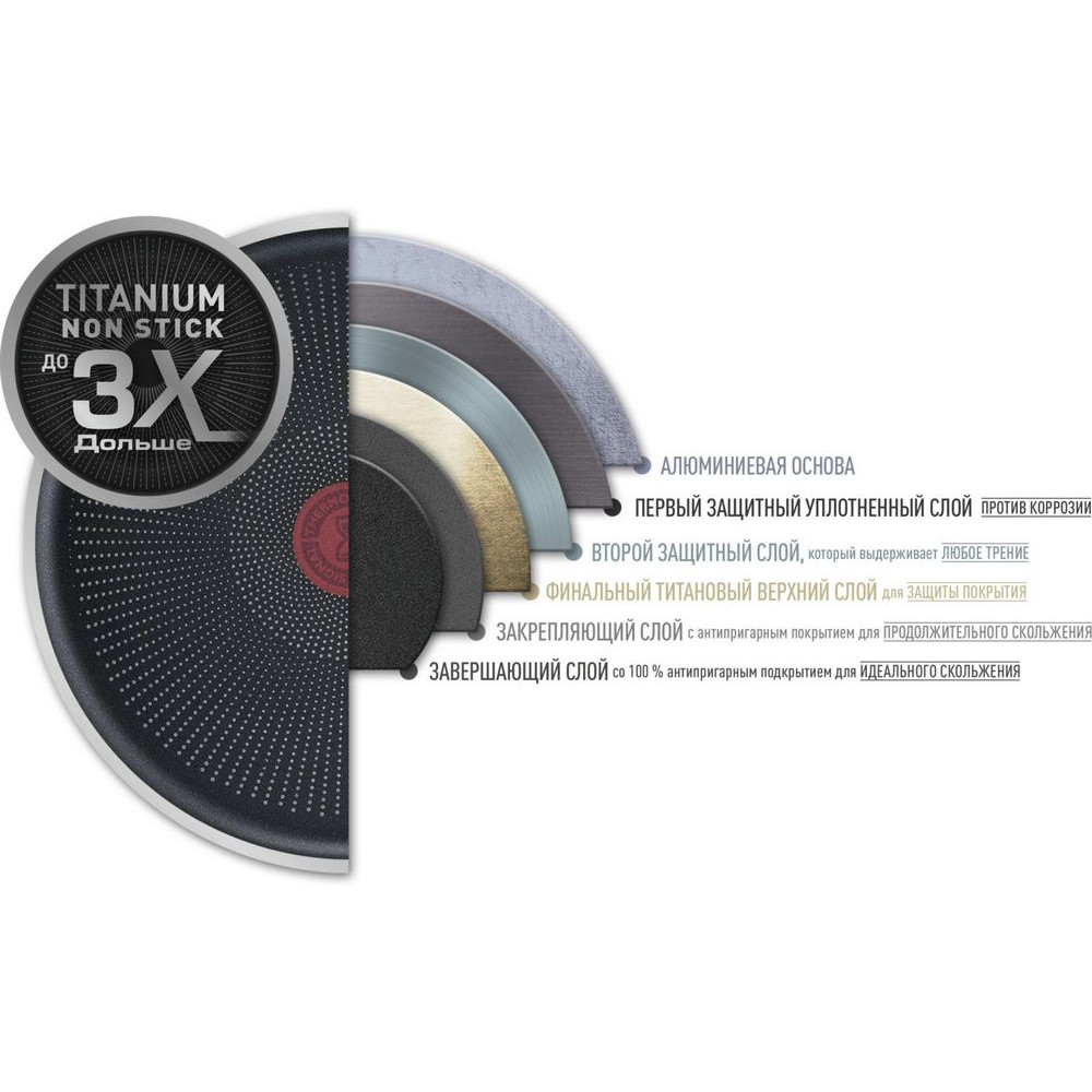 Посуда, созданная для долгой службы. Разогреть сковороду, подготовить и обжарить ингредиенты, перемешать, потушить, подать на стол, вымыть посуду, снова подогреть еду… Готовка – занятие хлопотное. Именно поэтому Tefal создает серию Ultimate – посуду, которая выдерживает любые кулинарные нагрузки снова и снова. Сковорода Ultimate оснащена усовершенствованным экстрапрочным антипригарным покрытием Tefal Titanium, которое прослужит до 3-х раз дольше по сравнению со стандартным покрытием Tefal Titanium. А инновационная индукционная технология Thermo-Fusion™+ гарантирует быстрый нагрев посуды и равномерное приготовление.