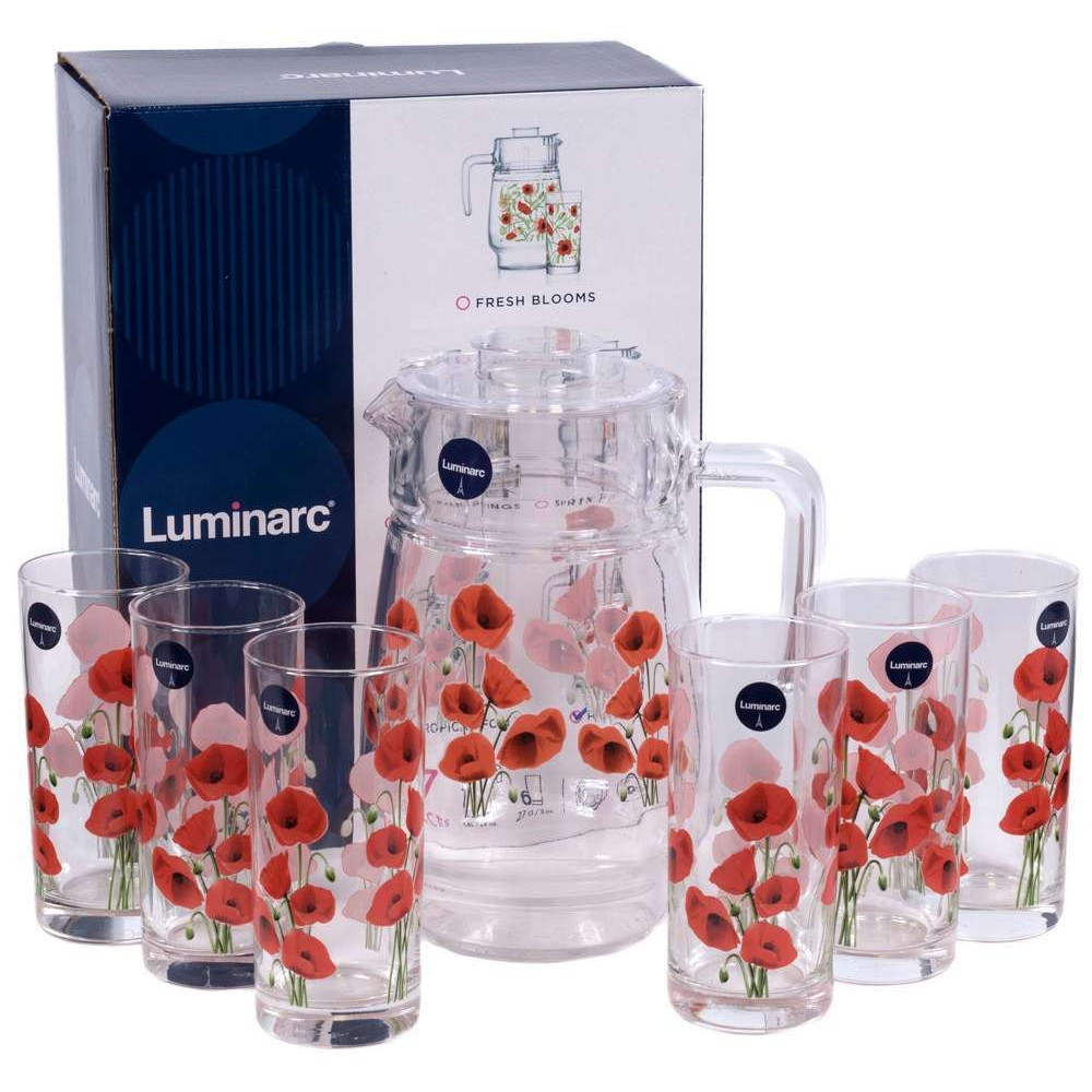 7 bölek nabor, gapakly grafin (1.6L) + 6 stakan (270ml). Täsirlere çydamly aýnadan ýasaldy. Gap-gaç ýuwýan maşynda ýuwup bolýar.