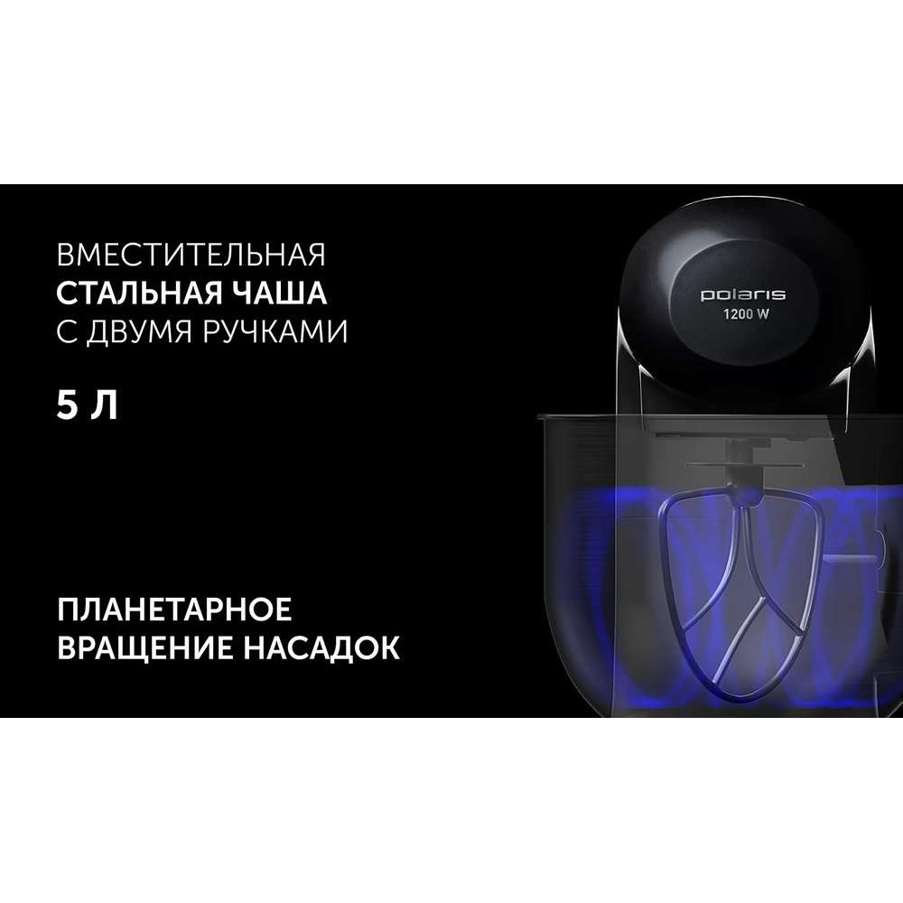 Кухонная машина Polaris PKM 1206 это многофункциональный современный прибор 6-в-1, который заменит вам миксер, блендер, мясорубку и овощерезку. 3 насадки для взбивания, перемешивания, замешивания теста легко справляются со своей задачей, продукты не налипают на стенки чаши. Достигается это путем одновременного разнонаправленного вращения насадки и привода к насадке. Вместительная стальная чаша с двумя ручками 5 л позволяет готовить блюда большого объема. Благодаря 6 скоростям работы и импульсному режиму вы сможете подобрать оптимальную скорость вращения насадок для приготовления различных видов блюд.