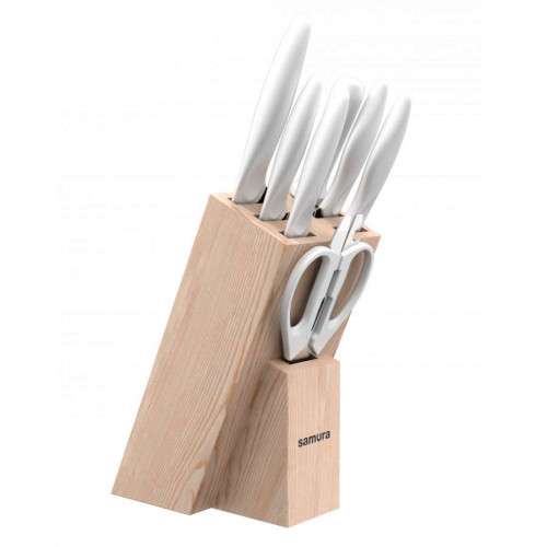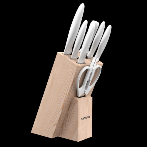 Набор из пяти кухонных ножей, мусата, ножниц и подставки: