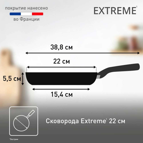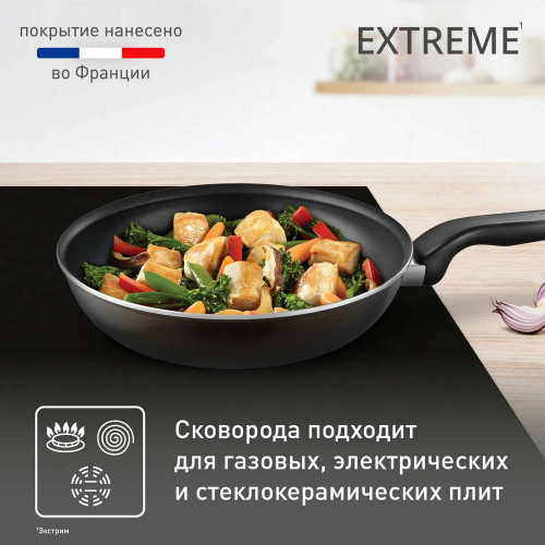 Сковорода Tefal Extreme 22 см 4230122 с диаметром 22 см идеально подходит для небольших порций и одиночных блюд. Отлично подходит для жарки, обжаривания и приготовления гарниров. Глубокая форма позволяет использовать сковороду не только для жарки, но и для тушения. Корпус сковороды выполнен из алюминия, что способствует равномерному прогреву. Внутреннее покрытие Titanium 2X с антипригарными свойствами позволяет готовить с минимальным количеством масла и облегчает чистку. Индикатор температуры Thermo-Signal подскажет, когда сковорода достигнет оптимальной температуры. Сковорода совместима с газовыми, электрическими и стеклокерамическими плитами. Серия Extreme идеально подходит для тех, кто ищет надежность и простоту в использовании.