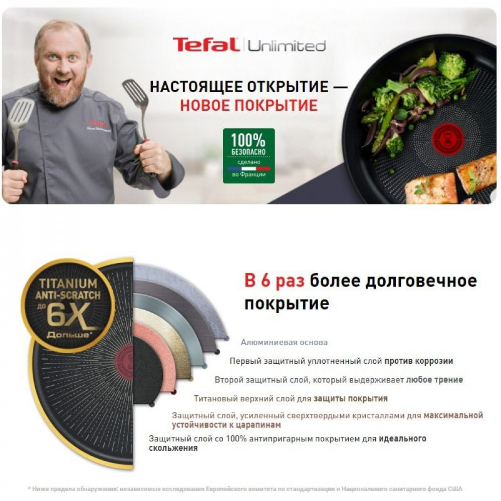 Внутреннее покрытие: антипригарное титановое покрытие “Titanium Anti-Scratch up to 6X Longer“