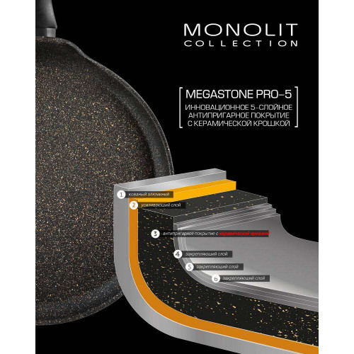 Покрытие: MEGASTONE PRO-5 Инновационное 5-слойное антипригарное покрытие с керамической крошкой