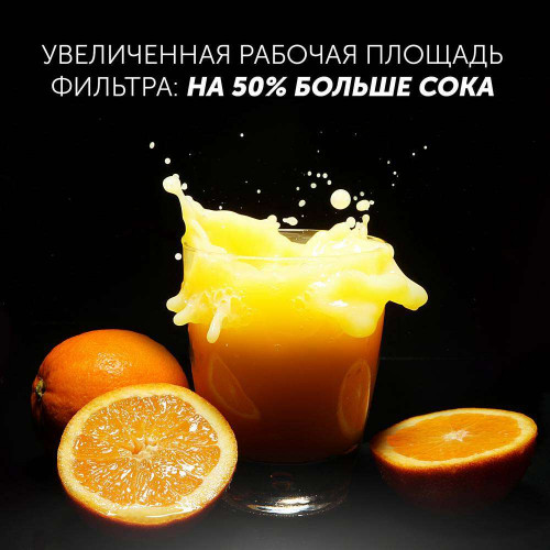 Увеличенная рабочая площадь фильтра: на 50% больше сока.