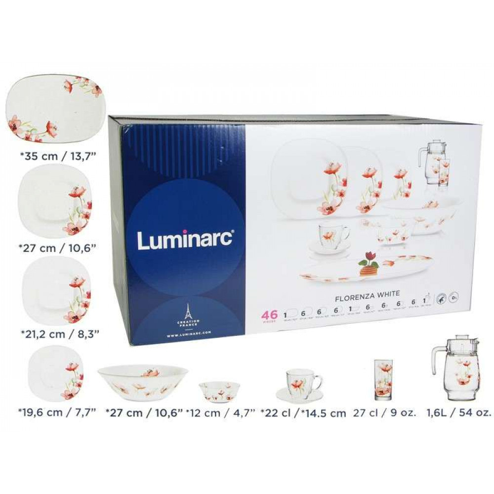 Столовый сервиз 46пр. 6 персон Luminarc Carine Florenza White N2214