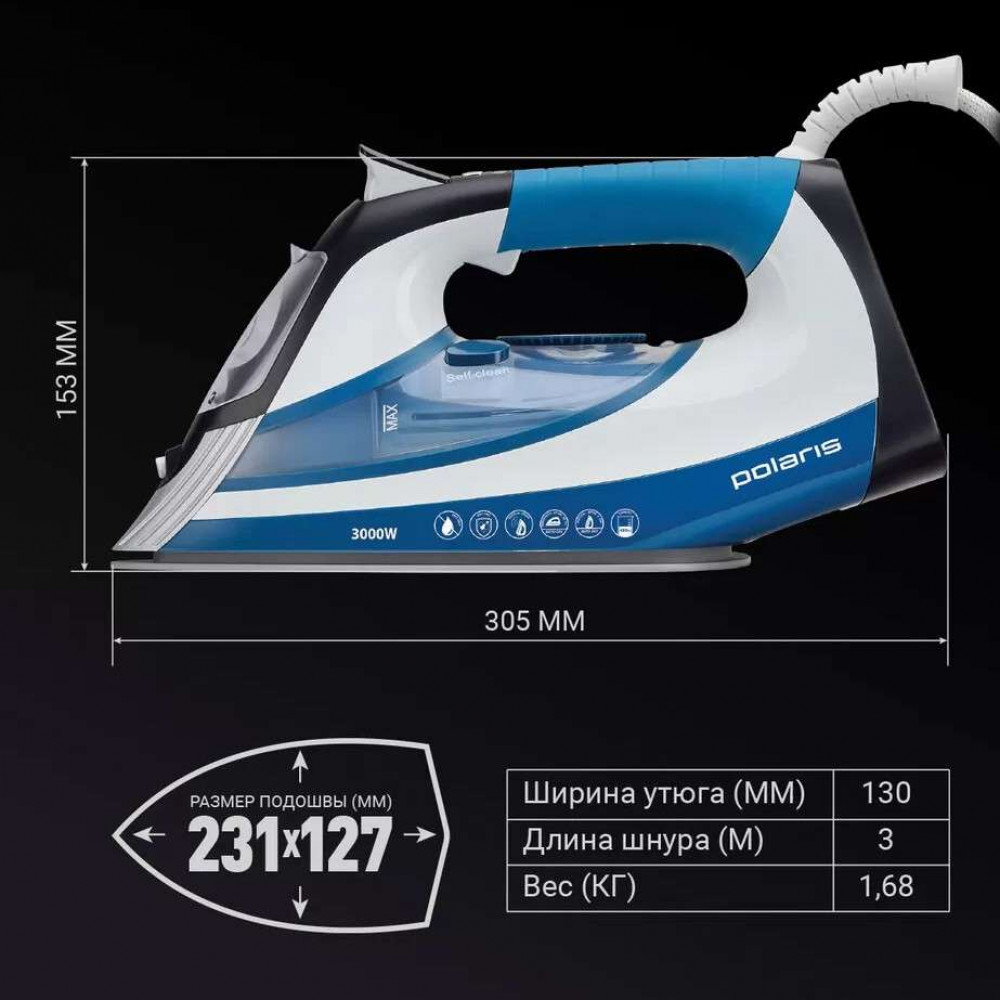 Уникальный датчик движения SMART STEAM - пар автоматически подается только при движении утюга.
