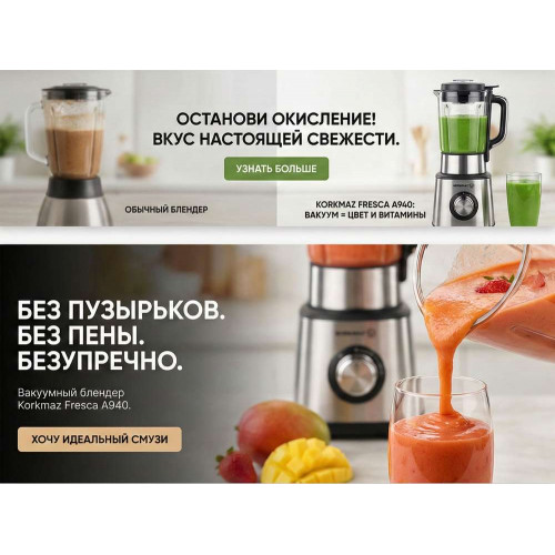 Готовить вкусные смузи, энергетические напитки и креативные рецепты теперь намного проще с вакуумным блендером Korkmaz Fresca!