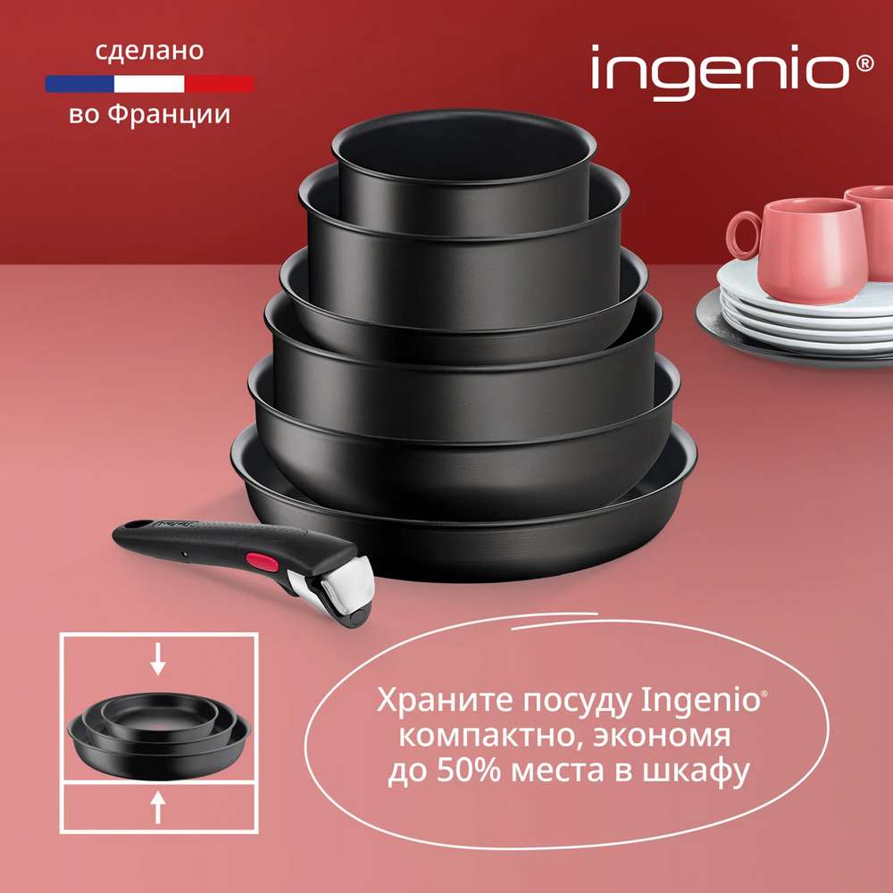 Комплектация: Сковороды 22/26/28см, Сотейник 24 см, Ковши 16/20см, Стекл. крышки 16/20/24см, Пласт. крышки 16/20 см, 2 ручки