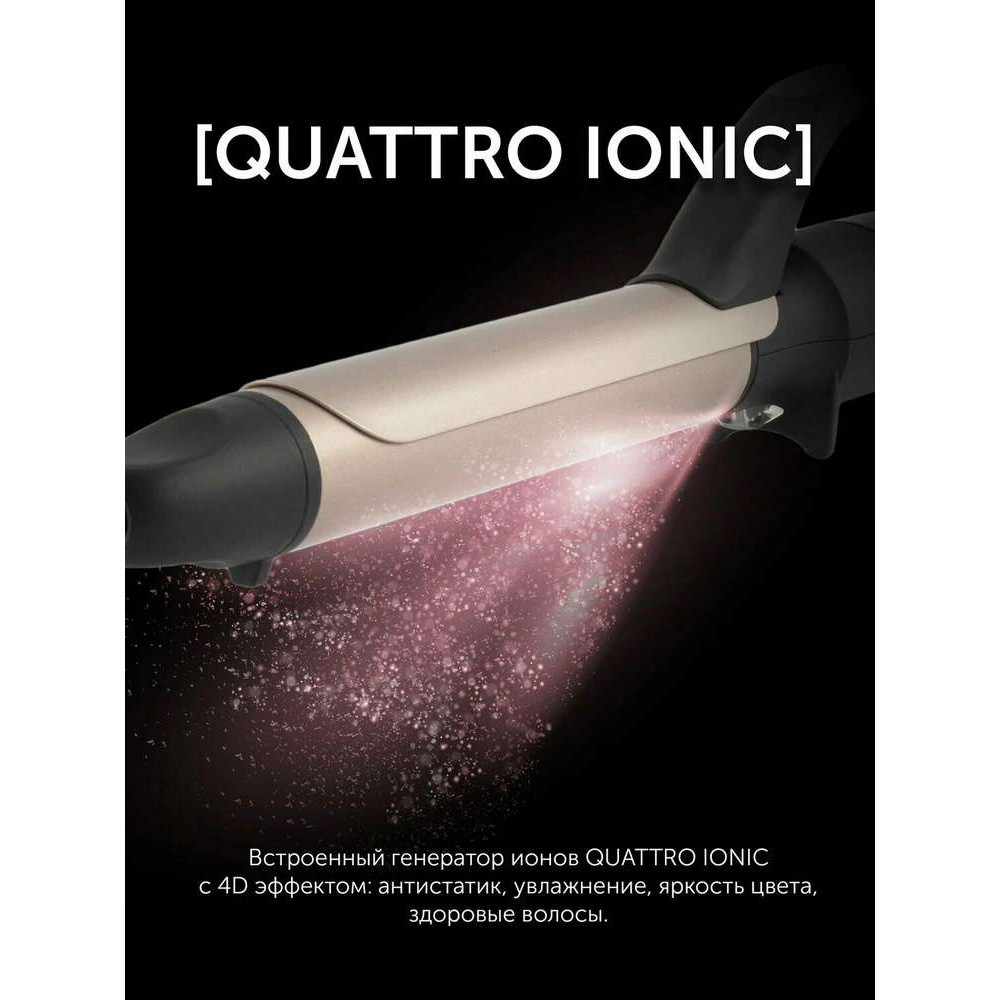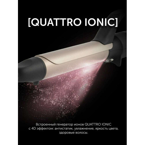 Встроенный генератор ионов QUATTRO IONIC с 4D эффектом здоровых волос: антистатик, увлажнение, яркость цвета, здоровые волосы. Отрицательно заряженные ионы снижают вред регулярных укладок.