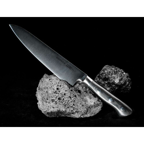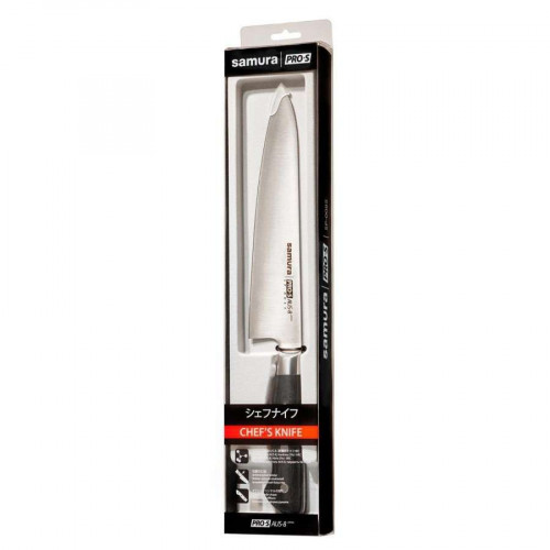 Нож Samura Pro-S шеф, 200 мм — это идеальное решение для выполнения глобальных и не очень операций на кухне, этому инструменту подвластны и овощи, и мясо, и рыба. Работать с ним можно активно — рукоять не натирает и не вызывает усталости, баланс ножа отличный. Особое покрытие исключает размножение бактерий и позволяет легко смывать с клинка даже запахи.