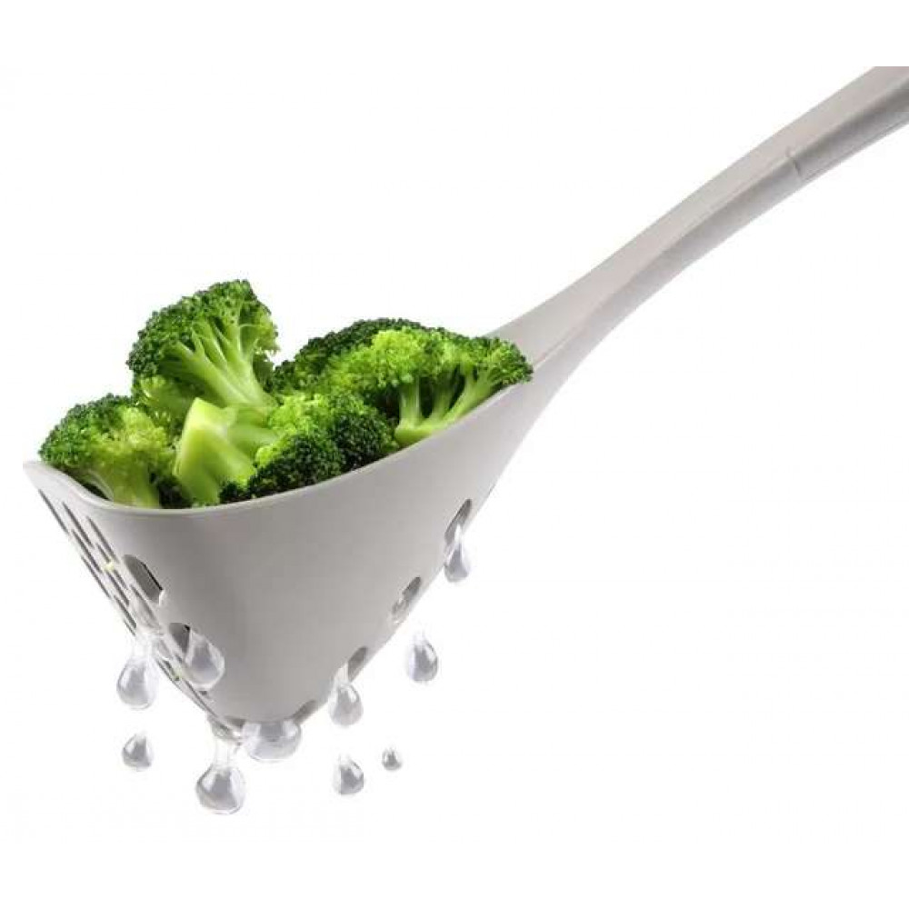 Шумовка 2 в 1 из серии Enjoy используется как шумовка для снятия пены и как толкушка для картофеля. Ей также удобно вынимать вареные овощи – вода будет сразу стекать через отверстия. Шумовка выдерживает высокую температуру до 220 °C и мытье в посудомоечной машине. Все аксессуары Enjoy произведены в Португалии и на 90% состоят из переработанных материалов – это позволяет нам делать их более экологичными и безопасными.