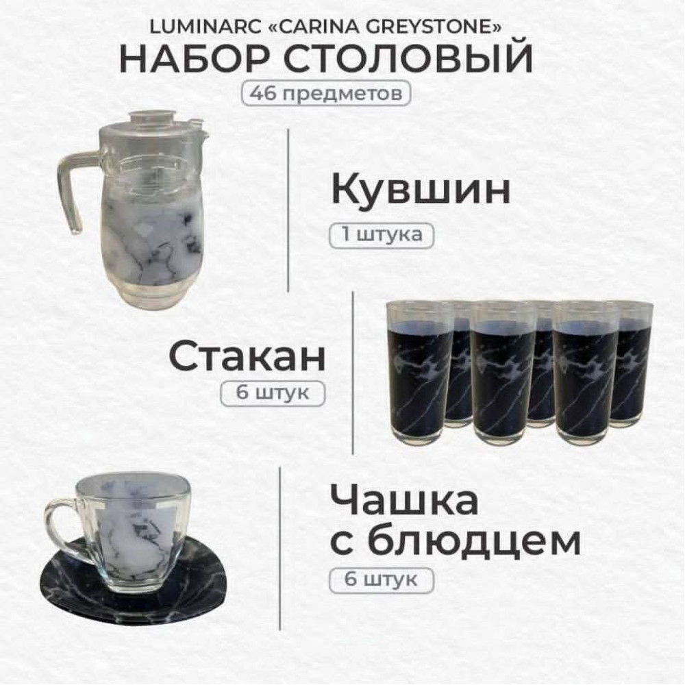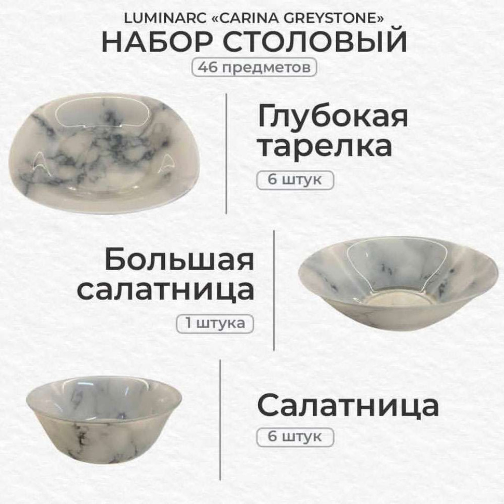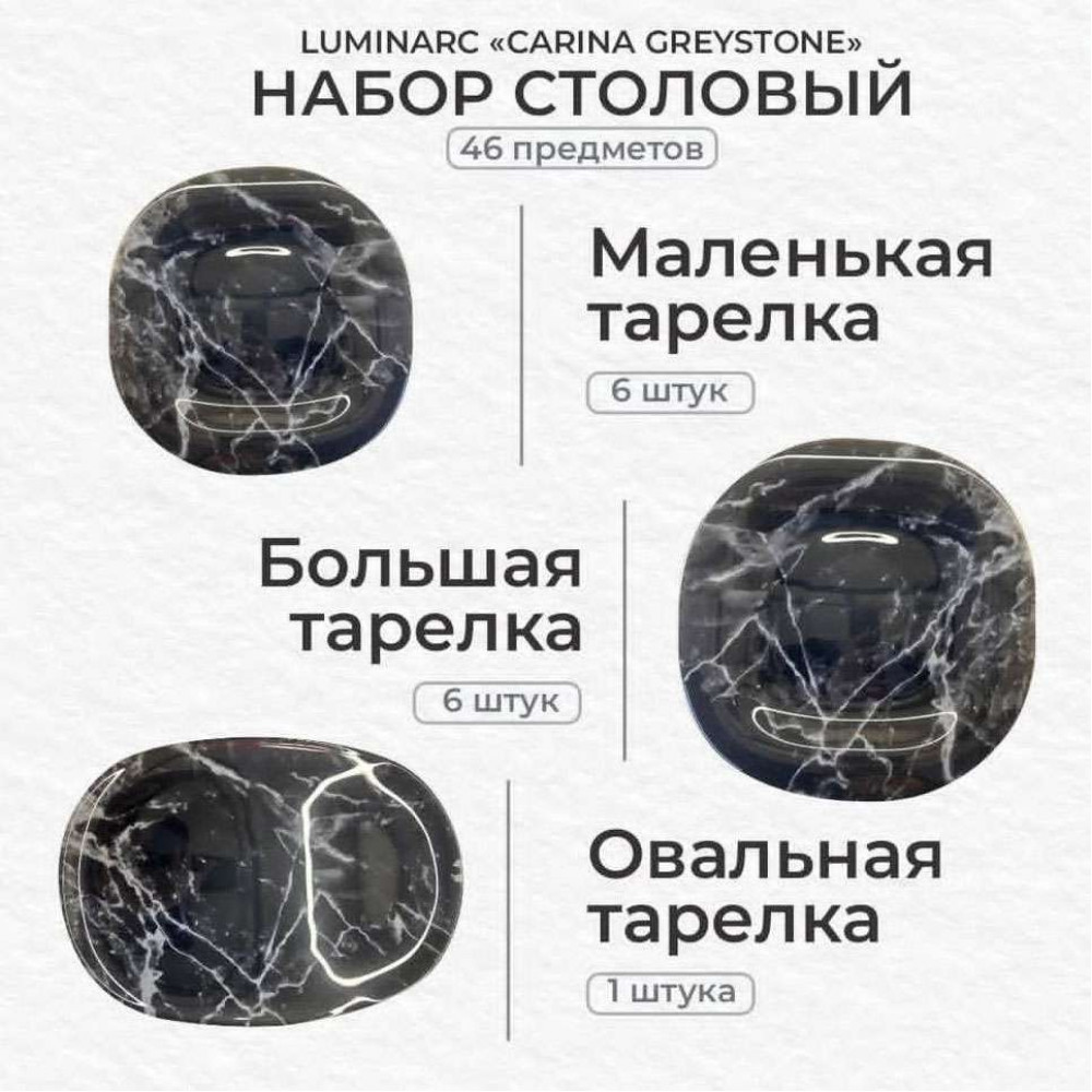Tarelka nabor 46 bölek Luminarc Carina Greystone V9325