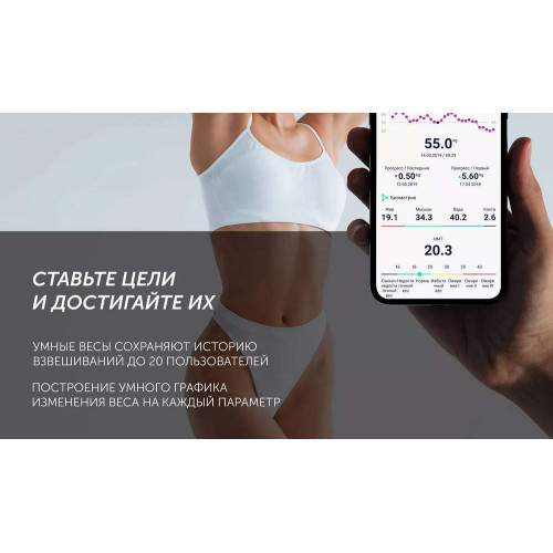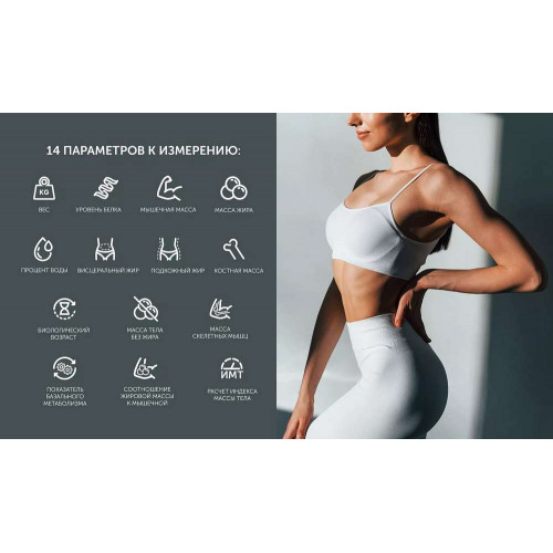 Измерение процентного содержания жировой, мышечной, костной массы и воды в организме.