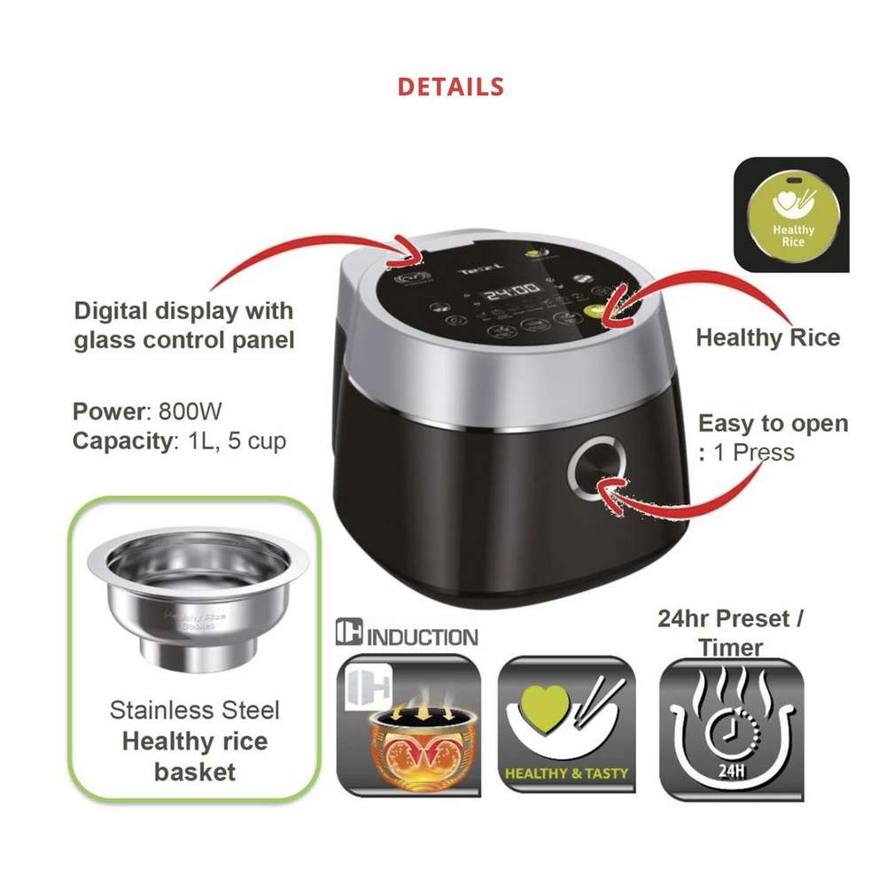 Благодаря уникальному двухэтапному процессу приготовления и корзине «Здоровый рис», предназначенной для выделения крахмала в процессе приготовления, рисоварка Healthy & Tasty от Tefal предлагает полезный белый рис без ущерба для вкуса. Наслаждайтесь универсальностью и оптимальными результатами с этой удобной и компактной рисоваркой!